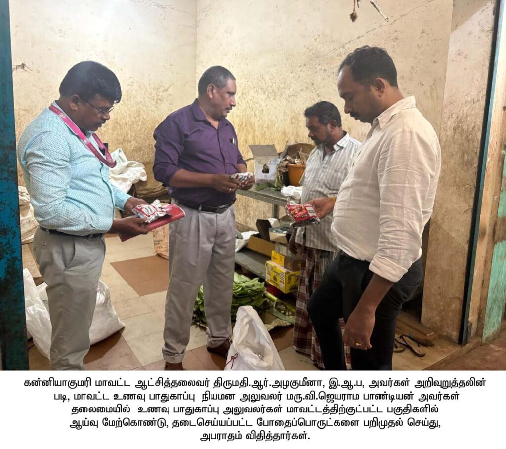ஜெயராமபாண்டியன் தலைமையில் உணவு பாதுகாப்பு அலுவலர்கள் அடங்கிய குழுவினர்.