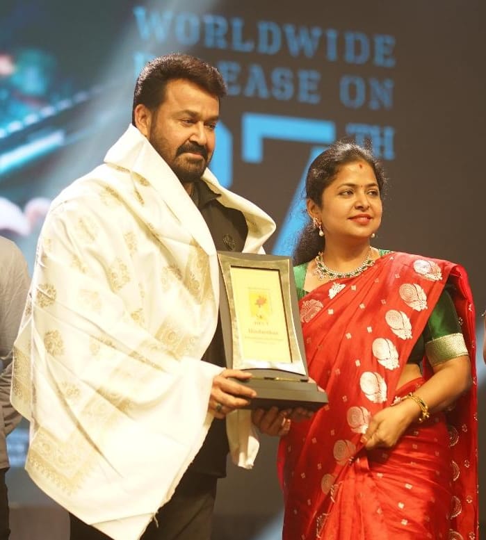 தொடர்ந்து நடைபெற்ற நிகழ்ச்சியில் மலையாள பட உலகின் முன்னனி நடிகரான மோகன்லால் மேடையில் தோன்றி ஆச்சரியம் அளித்தார்.