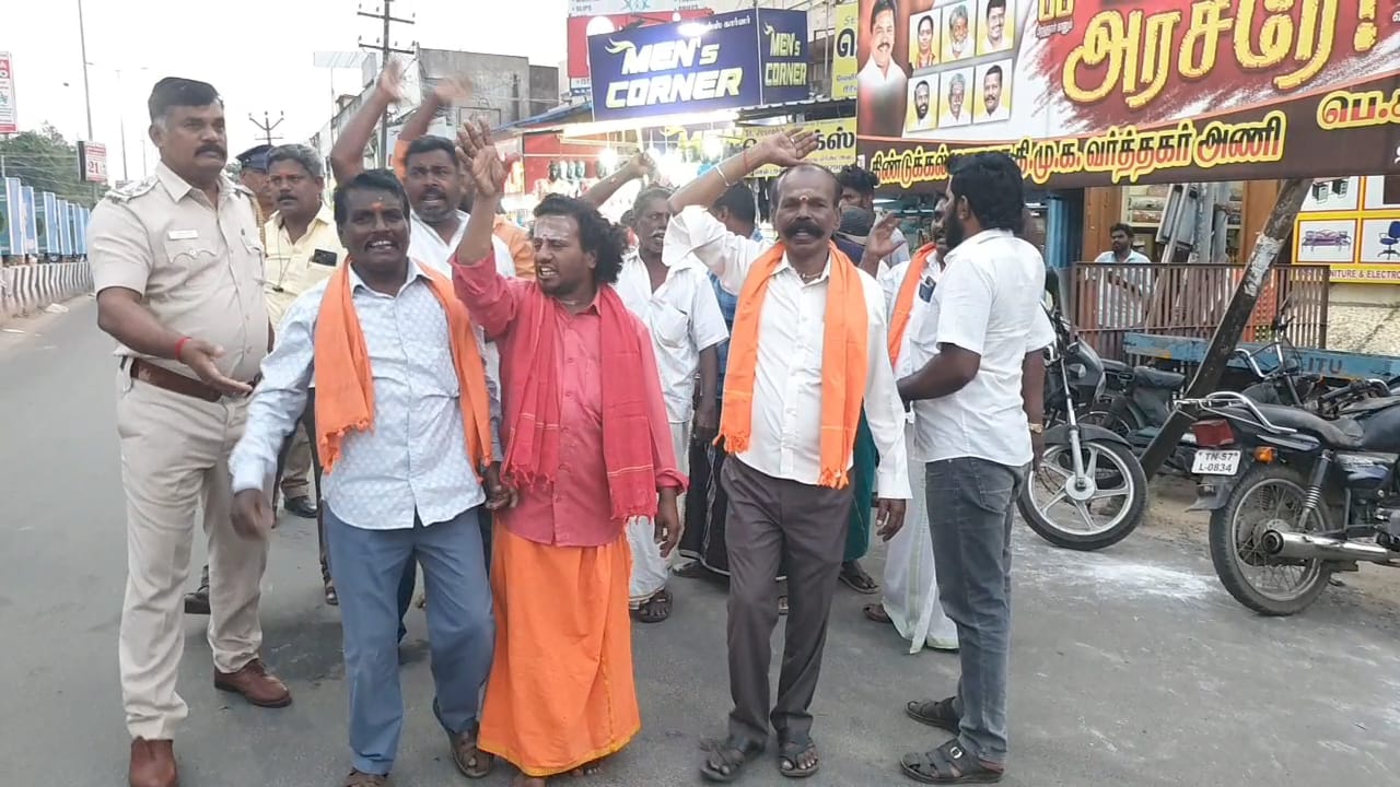இந்நிலையில் கோவிலில் இருக்கும் சிலைகளை அகற்ற இன்று காலை வருவாய்த் துறையினர் அங்கு சென்றனர். அதற்கு எதிர்ப்பு தெரிவித்து ஊர் மக்கள், பக்தர்கள், இந்து முன்னணியினர் போராட்டத்தில் ஈடுபட்டனர். அப்போது நடந்த தள்ளுமுள்ளு சம்பவத்தில், சிலர் காயம் அடைந்தனர். இந்து முன்னணி மாநில தலைவர் காடேஸ்வரா சுப்பிரமணியம், காயம் அடைந்து திருப்பூர் அரசு மருத்துவமனையில் அனுமதிக்கப்பட்டு உள்ளார். இதனை கண்டித்து திண்டுக்கல் மாநகராட்சி அருகே சாலையில் ஆர்ப்பாட்டத்தில் ஈடுபட்ட இந்து முன்னணியினரை காவல் துறையினர் கைது செய்தனர் .