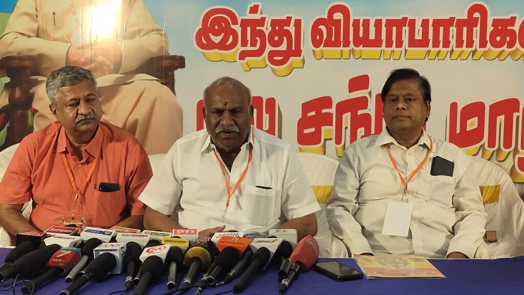 கோவையில் இந்து வியாபாரிகள் நல சங்க மாநாடு ராம்நகர் பகுதியில் உள்ள தனியார் அரங்கில் நடைபெற்றது இந்த மாநாட்டில் இந்து முன்னணி மாநில தலைவர் காடேஸ்வரா சுப்ரமணியம் சிறப்பு அழைப்பாளராக பங்கேற்றார்.