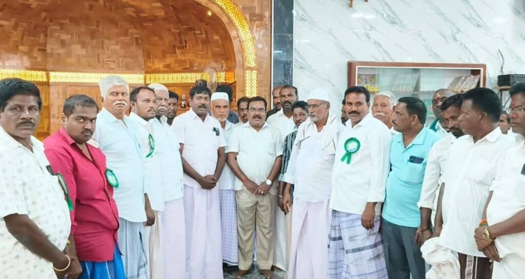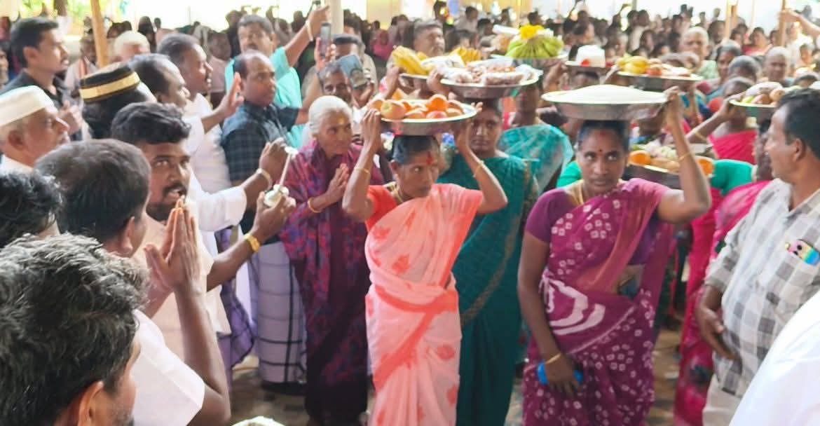 புதுக்கோட்டை மாவட்டம் அறந்தாங்கி அருகே உள்ள வெட்டிவயல் மற்றும் கருங்குழிகாடு கிராமத்தில் புதிதாக கட்டப்பட்டு திறக்கப்பட உள்ள ஜூம் ஆ பள்ளிவாசல் நிகழ்வுக்கு பள்ளிவாசலுக்கு அருகே உள்ள… விஸ்வநாதபுரம்.. வெட்டிவயல்.. சீனமங்களம்.. திட்டக்குடி.. மேல்மங்கலம்..கருங்குழி க்காடு . ஆகிய கிராமங்களைச் சேர்ந்த இந்துக்கள் பள்ளிவாசலுக்கு எடுத்துச் செல்லும் சீர் தட்டுகளை விநாயகர் கோவிலில் வைத்து வழிபாடு செய்து பின்னர் மேளதளங்கள் முழங்க ஊர்வலமாக எடுத்துச் சென்று திறப்பு விழா காணும் பள்ளிவாசலுக்கு எடுத்துச் சென்றனர்.