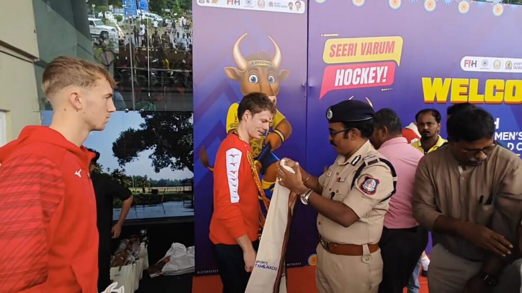 அதேபோல் இங்கிலாந்து அணியை மதுரை மாநகர காவல் ஆணையாளர் லோகநாதன் வரவேற்றார் தொடர்ந்து நமீபியா ஹாக்கி வீரர்களை மதுரை திட்ட இயக்குனரும், தென்னாப்பிரிக்கா அணியினரை உசிலம்பட்டி துணை ஆட்சியரும் வரவேற்றனர்.