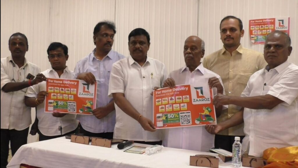 தமிழகத்தில் பல்வேறு உணவு செயலிகள் உள்ள நிலையில் கரூர் மாவட்ட ஹோட்டல் உரிமையாளர் சங்கம் சார்பில் ZAAROZ சென்ற உணவு டெலிவரி செயலியை அதன் சங்கம் சார்பில் வெளியிடப்பட்டது.