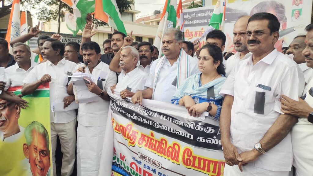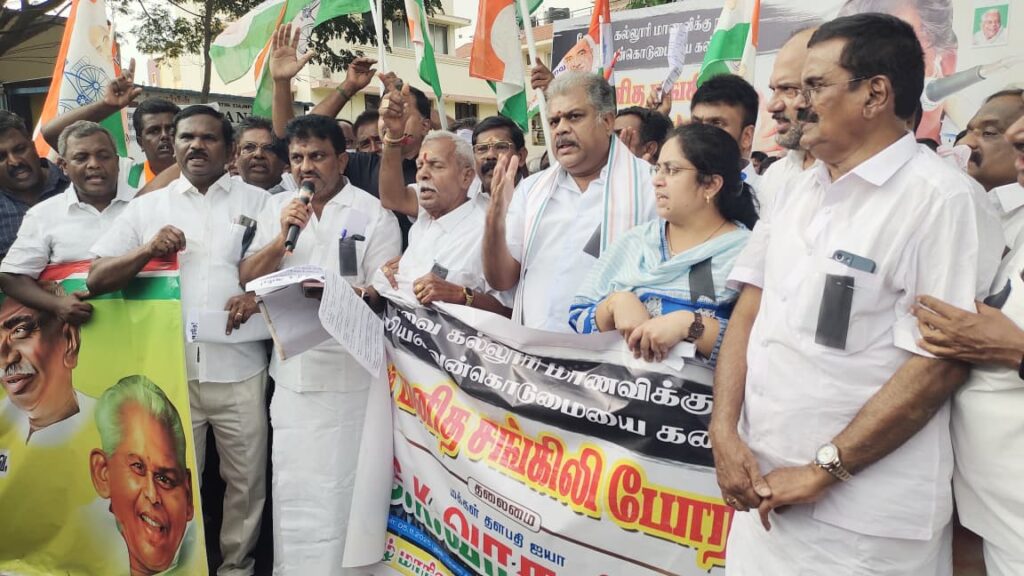 கோவையில் கல்லூரி மாணவி பாலியல் வன்கொடுமையை கண்டித்து தமிழ்மாநில காங்கிரஸ் தலைவர் ஜி.கே. தலைமையில் கோல்ட் வின்ஸ் பகுதியில் இன்று மாலை மனிதசங்கிலி மற்றும் ஆர்ப்பாட்டம் நடைபெற்றது.