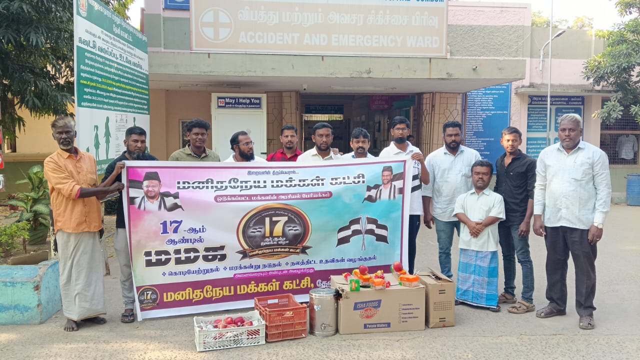 ம.ம.க 17ஆம் ஆண்டு துவக்க விழாவில், மருத்துவமனை நோயாளிகளுக்கு பிஸ்கட், பழங்கள், ஹார்லிக்ஸ் வழங்கி கொண்டாடினர்.
