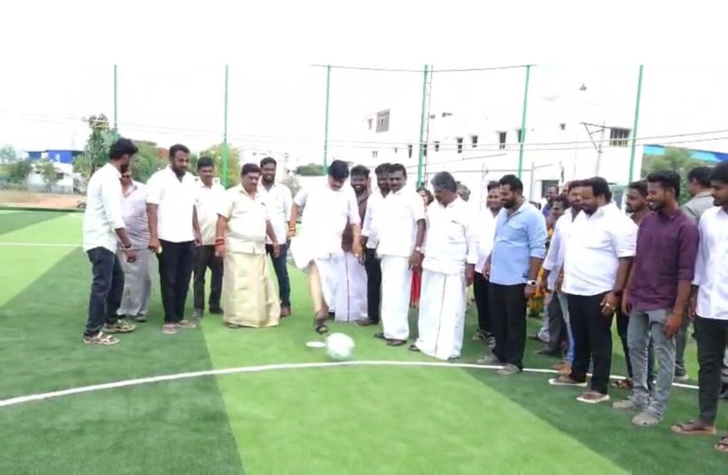 மைதானத்தை திறந்து வைத்து பேசியதோடு விளையாட்டு மைதானத்திலும் களமிறங்கி ஆடி அசத்தினார் ராஜேந்திரபாலாஜி.