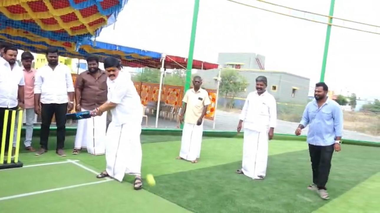 மைதானத்தை திறந்து வைத்து பேசியதோடு விளையாட்டு மைதானத்திலும் களமிறங்கி ஆடி அசத்தினார் ராஜேந்திரபாலாஜி.