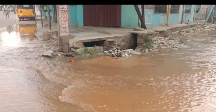 இந்த பகுதி மக்களுக்கு தினசரி நகராட்சி கூட்டு குடிநீர் திட்டத்தின் கீழ் குடிநீர் விநியோகம் செய்து வரும் சூழலில், வழக்கம் போல இன்று காலை திறக்கப்பட குடிநீர் குழாயில், உடைப்பு ஏற்பட்டு ஆயிரக்கணக்கான லிட்டர் குடிநீர் தெரு வழியாகவும், சாக்கடை கால்வாயிலும் ஆறாக ஓடியது.