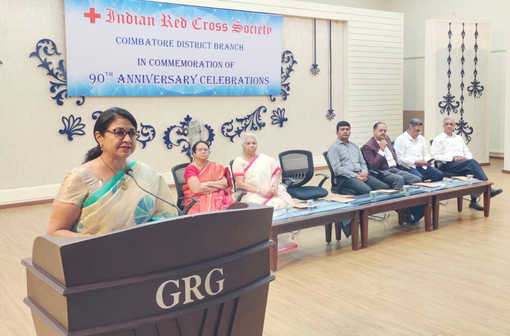 கடந்த 90 ஆண்டுகளாக பல்வேறு சமூக நல பணிகளை செய்து வரும்,இந்திய செஞ்சிலுவை சங்கத்தின் 90 வது ஆண்டு விழா கோயம்புத்தூர் மாவட்டக் கிளை செஞ்சிலுவை சங்கம் சார்பாக கிருஷ்ணம்மாள் மகளிர் கல்லூரி வளாகத்தில் நடைபெற்றது..