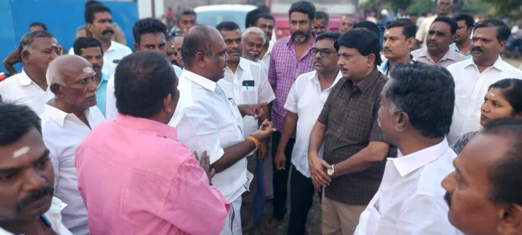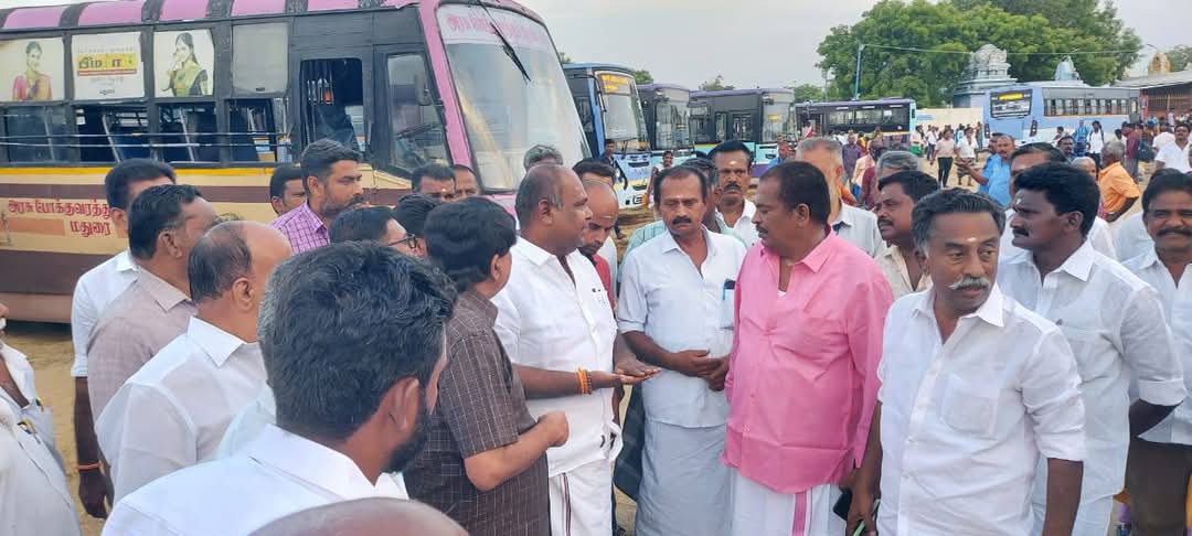 ஆனால் தற்காலிக பேருந்து நிலைய பணிகள் கடந்த மூன்று மாதத்திற்கு மேலாக நடைபெற்று வருவது குறிப்பிடத்தக்கது. இந்நிலையில் தற்காலிகப் பேருந்து நிலையத்தில் ஞாயிறன்று பெய்த பலத்த மழையால் சேரும் சகதியமாக மாறியதால் பேருந்து நிலையத்திற்குள் வந்த பேருந்து ஒன்று சகதியில் சிக்கிக் கொண்டது. பேருந்தை வெளியே எடுக்க முயற்சித்து முடியாததால், தற்போது வரை பேருந்து அங்கேயே நிற்கிறது. இந்த நிலையில் நகராட்சி அதிகாரியிடம் முன்னாள் அமைச்சர் ஆர். பி. உதயகுமார் பணிகள் குறித்து பேசிய போது, அங்கு வந்த பயணி ஒருவர் பழைய பேருந்து நிலையத்தில் தவறாக இறங்கி விட்டதாகவும், தற்காலிக பேருந்து நிலையம் எங்கு உள்ளது என கேட்டால் முறையான பதில் அளிக்காமல் அலைக்கழிப்பதாக குற்றம் சாட்டினார். இதைத் தொடர்ந்து நகராட்சி அதிகாரிகளிடம் பேசிய முன்னாள் அமைச்சர் ஆர். பி. உதயகுமார் விரைவில் பேருந்து நிலையத்தில் அனைத்து வசதிகளையும் செய்து தரவில்லை என்றால் சாலை மறியலில் ஈடுபடுவோம் என எச்சரித்தார். இதற்கு அதிகாரிகள் விரைந்து நடவடிக்கை எடுப்பதாக அவரிடம் தெரிவித்தனர். இதைத்தொடர்ந்து அங்கிருந்து புறப்பட்டுச் சென்றார்.
