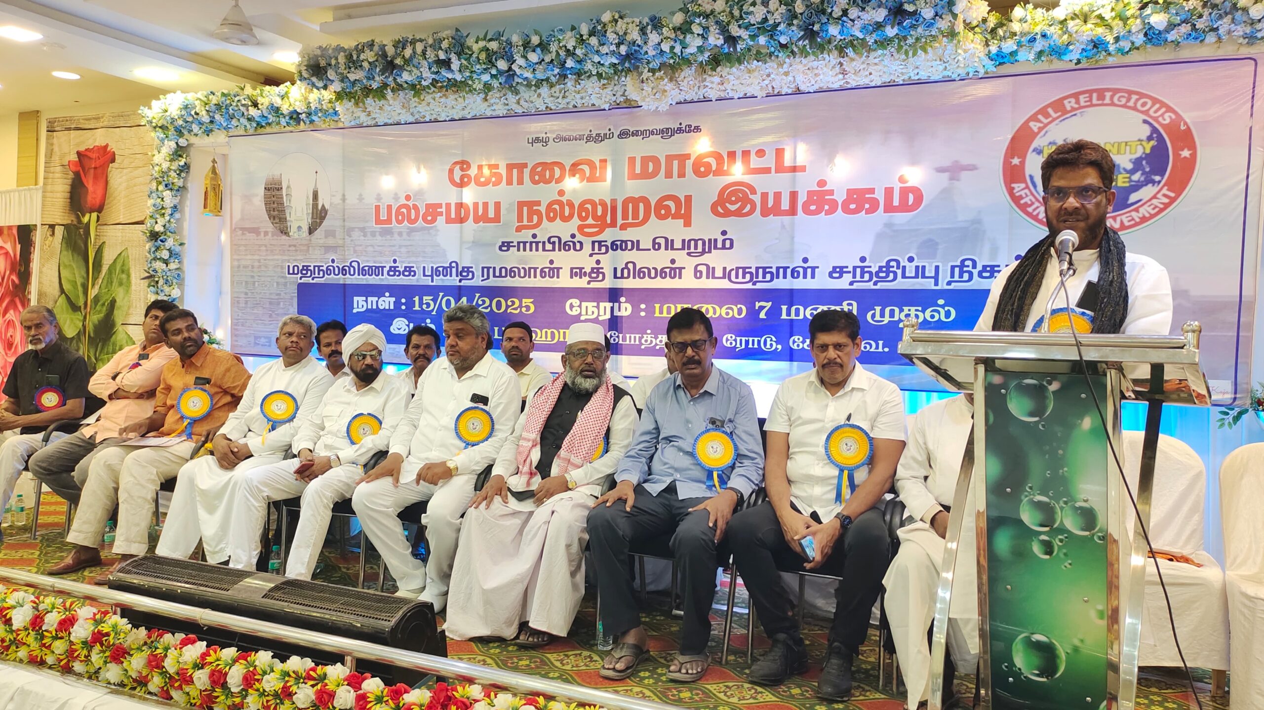 கோவை மாவட்ட பல்சமய நல்லுறவு இயக்கம் சார்பாக அனைத்து சமய தலைவர்கள் கலந்து கொண்ட ஈத் மிலன் பெருநாள் சந்திப்பு நிகழ்ச்சி வெகு விமரிசையாக நடைபெற்றது.