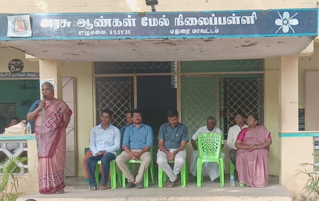 முதுகலை தாவரவியல் ஆசிரியர் மணிக்குமார் வரவேற்புரை ஆற்றினார். இந்த நிகழ்ச்சியில் சிறப்பு விருந்தினராக அரசு பள்ளிக்கு 7 கோடி ரூபாய் மதிப்புள்ள தனது சொத்தை கொடுத்த மதுரை ஆயி என்ற பூரணம் கலந்து கொண்டு பேசும்போது பெண்களை மதித்தல், பெண் கல்வி, பெண்களுக்கு வேலைவாய்ப்பில் முன்னுரிமை கொடுத்தல், குழந்தை திருமணம், குழந்தைத் தொழிலாளர் மற்றும் குழந்தைகள் பாதுகாப்பு பற்றிய விழிப்புணர்வை ஏற்படுத்தும் வகையில் பேசினார்.
