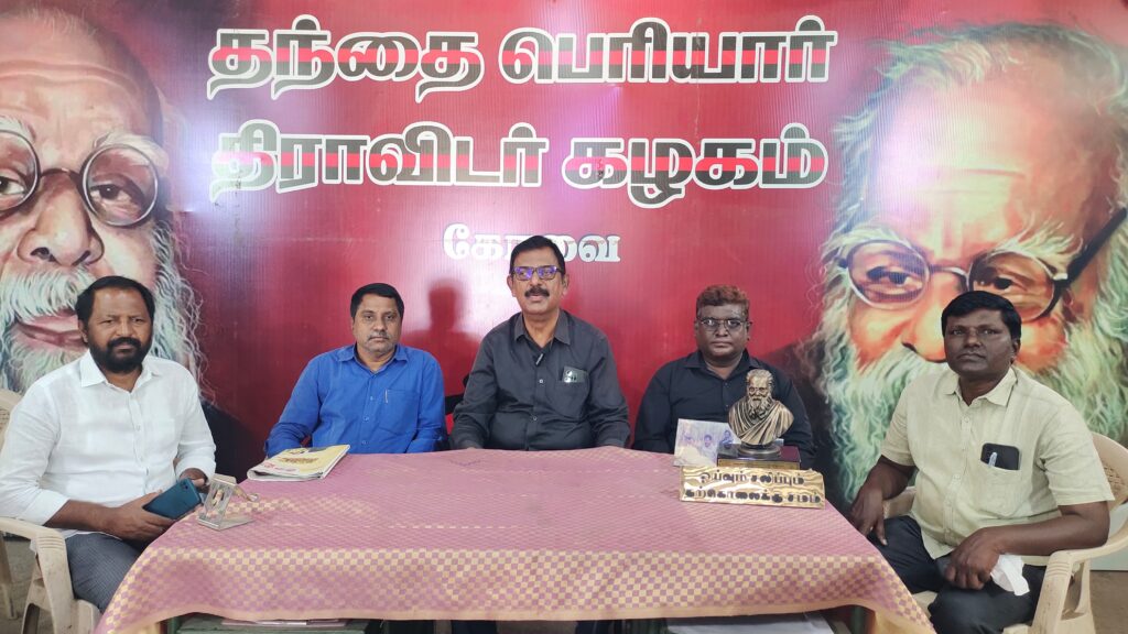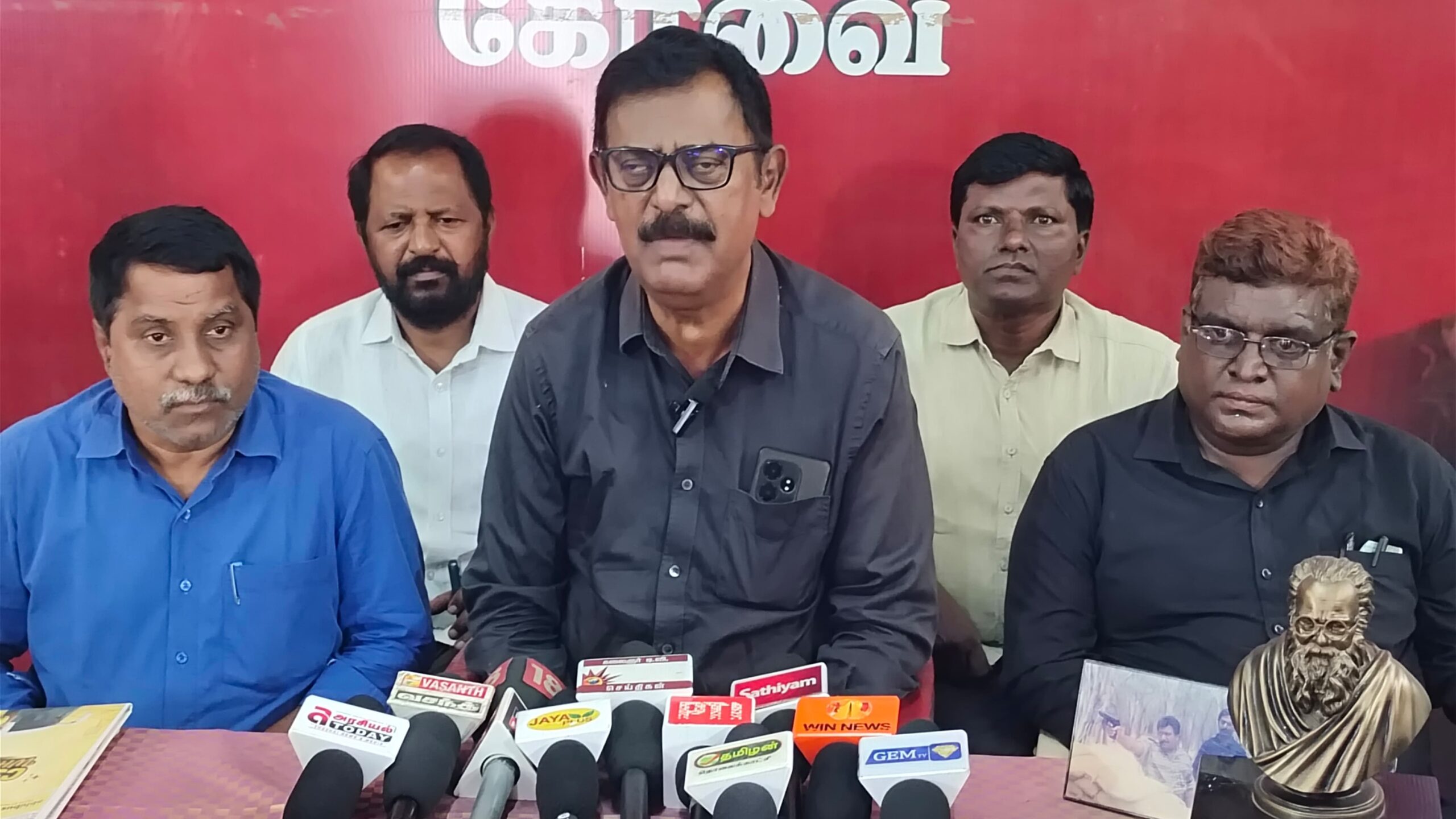 கோவை காந்திபுரம் பெரியார் படிப்பகத்தில் தபெதிக பொது செயலாளர் கு.ராமகிருஷ்ணன் பேட்டியளித்துள்ளார்.