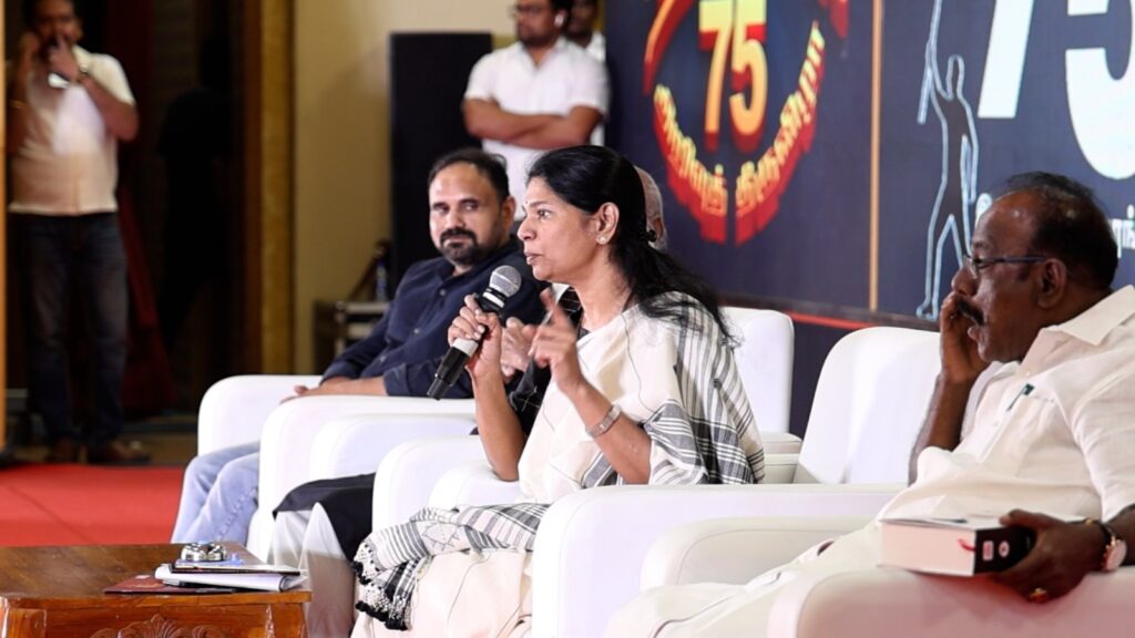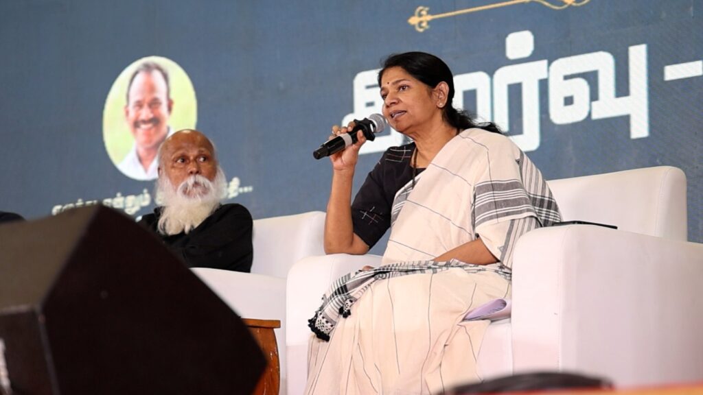 இன்று (09/11/2025) நடந்த கருத்தரங்கில் திமுக துணைப் பொதுச் செயலாளரும், நாடாளுமன்ற திமுக குழுத் தலைவருமான கனிமொழி கருணாநிதி பங்கேற்று பேசினார்; அமைச்சர் உதயநிதி, மிக முக்கியமான ஒரு காலகட்டத்தில், இத்தருணத்திலேயே இந்த நிகழ்ச்சியை இங்கே நடத்திக் கொண்டிருக்கிறார். தேர்தல் நெருங்கிக் கொண்டிருக்கிறது, பல்வேறு கணைகள் நம்மை நோக்கி வீசப்பட்டுக் கொண்டிருக்கிறது. எந்த திசையிலிருந்து, எந்த தாக்குதல் திராவிட முன்னேற்றக் கழகத்தை நோக்கி வந்துகொண்டிருக்கிறது என்று தெரியாத அளவிற்கு பல்முனை தாக்குதல் நடைபெறுகிறது. ஏனென்றால், அவர்களின் ஒரே இலக்கு – நாம்தான்.