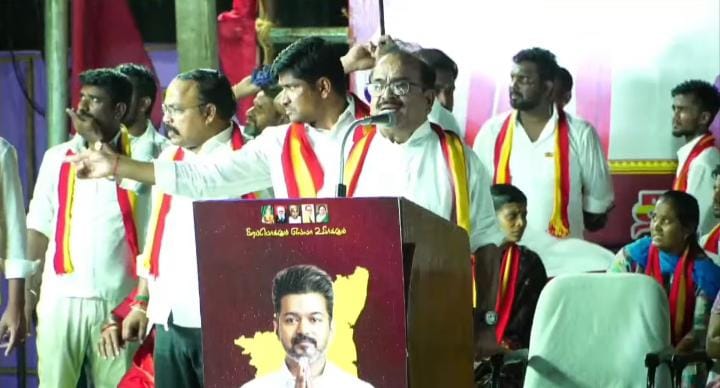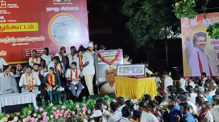 கரூரில் தவெக கூட்டம் நடைபெற்றபோது, மழை பெய்த்து நாஞ்சில் சம்பத் பேசிக் கொண்டிருப்பது திடீரென கொடிக்கம்பம் சாய்ந்து பேச்சாளர் ஜெகதீஷ் பாண்டியன் மண்டையில் விழுந்ததால் பரபரப்பு ஏற்பட்டது.