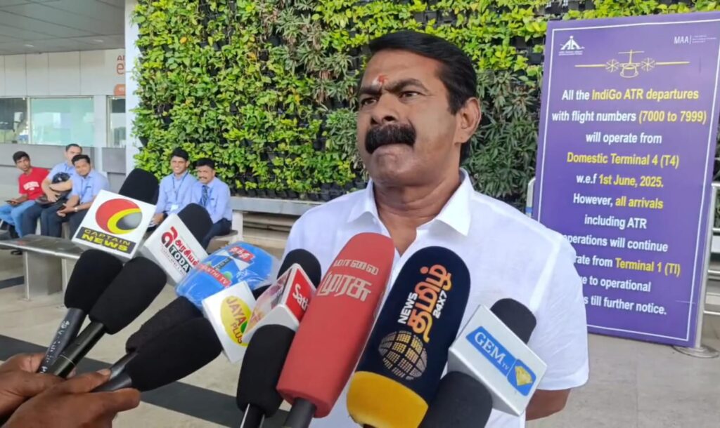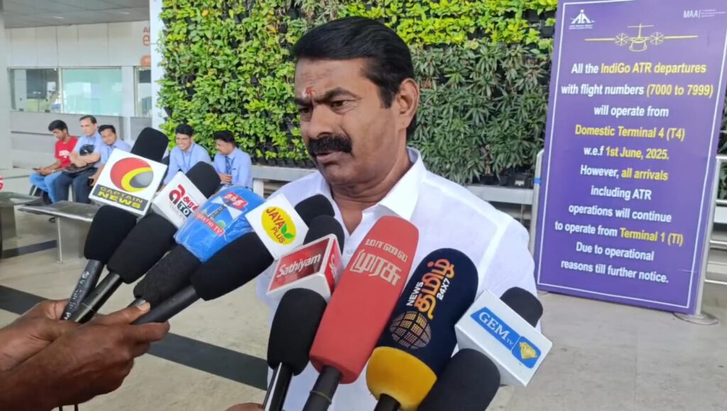 திருச்சி செல்வதற்காக சென்னை விமான நிலையம் வந்த சீமான் செய்தியாளர்களை சந்தித்தார் அப்போது பேசிய அவர்:-