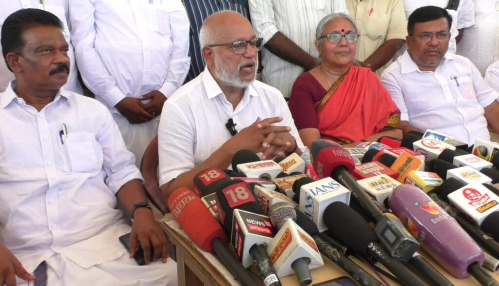 கரூர் மாநகராட்சிக்கு உட்பட்ட வேலுச்சாமிபுரத்தில் தமிழக வெற்றிக் கழகத்தின் தலைவர் விஜய் பிரச்சாரத்தில் கூட்ட நெரிசலில் சிக்கி 41 நபர்கள் உயிரிழந்தனர். இன்று அப்பகுதிக்கு வந்த இந்திய கம்யூனிஸ்ட் (மார்க்சிஸ்ட்) கட்சியின் அகில இந்திய பொதுச் செயலாளர் பேபி மற்றும் எம்.பிக்கள் சச்சிதானந்தம் உள்ளிட்டோர் சம்பவ இடத்தை நேரில் ஆய்வு செய்தனர்.