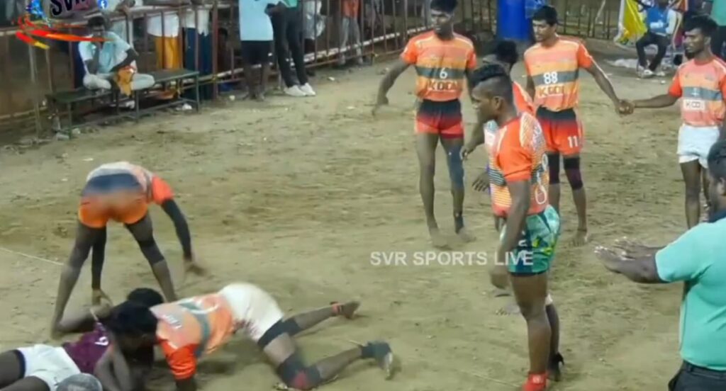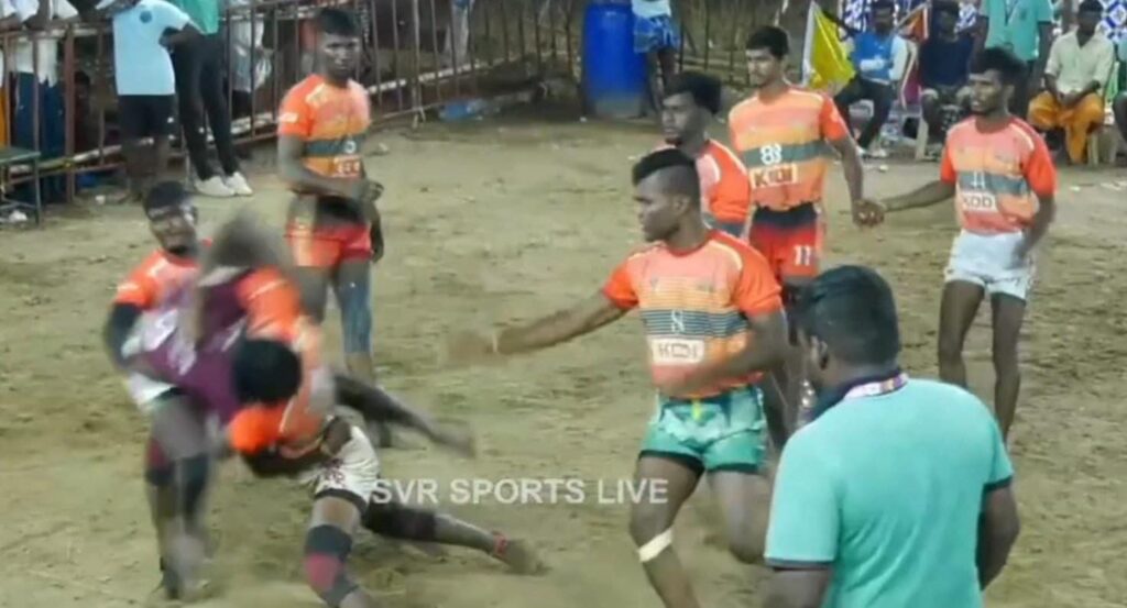அவர் கபடி கபடி என கூறிச் சென்ற போது எதிர் அணியினர் அவரை சுற்றி வளைத்து அழுத்திப் பிடித்து தூக்கி எறிந்தனர். இதையடுத்து மைதானத்தில் மயக்கமடைந்த அவரை சக வீரர்கள் தண்ணீர் கொடுத்து தூக்கி உள்ளனர்.