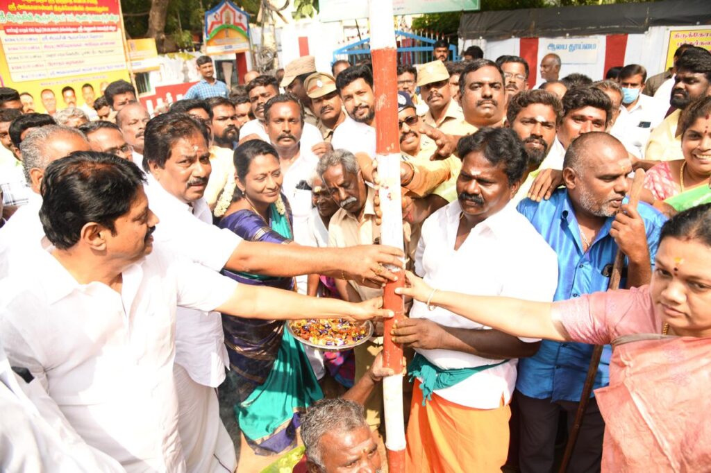 அவனியாபுரம் ஜல்லிக்கட்டு போட்டி நடத்துவதற்காக இன்று காலையில் முகூர்த்தகால் அமைச்சர் மூர்த்தி, மாவட்ட ஆட்சியர், மாநகராட்சி மேயர், ஆணையாளர் உள்ளிட்டோர் முன்னிலையில் நடப்பட்டது.