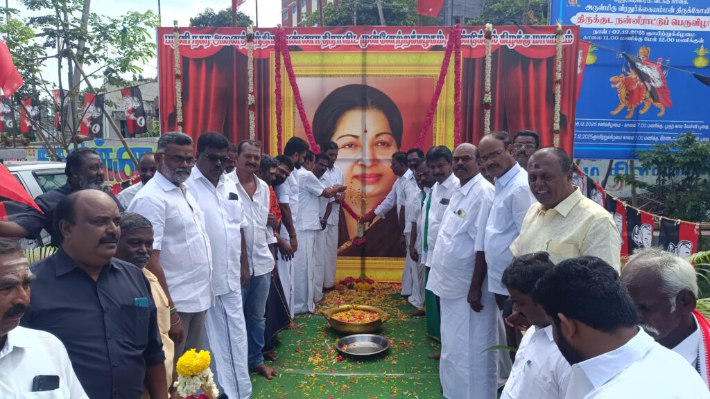திண்டுக்கல் மாவட்டம் பழனியில் பேருந்து நிலையம் அருகே மயில் ரவுண்டான அருகில் மறைந்த முன்னாள் முதல்வர் ஜெயலலிதா அவர்களின் டிசம்பர் 5 நினைவு தினம் நினைவு அஞ்சலி செலுத்தப்பட்டது.