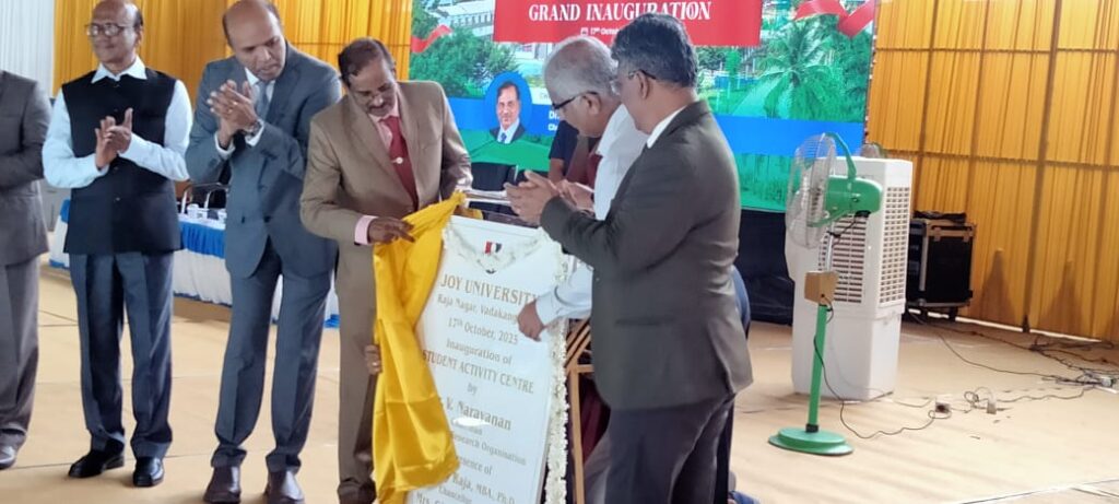 ஜாய் பல்கலைக்கழகம் வளாகத்தில் புதிதாக கட்டப்பட்டுள்ள. மாணவர்களின் பலவிதமான திறன் விளையாட்டு மையத்தை இந்தியா விண்வெளி துறையின் தலைவர் முனைவர். நாராயண் திறந்து வைத்து குத்துவிளக்கு ஏற்றினார். நிகழ்வில் ஜாய் பல்கலைக்கழகத்தின் வேந்தர் முனைவர் ஜாய் ராஜா முன்னிலை வகித்தார்.
