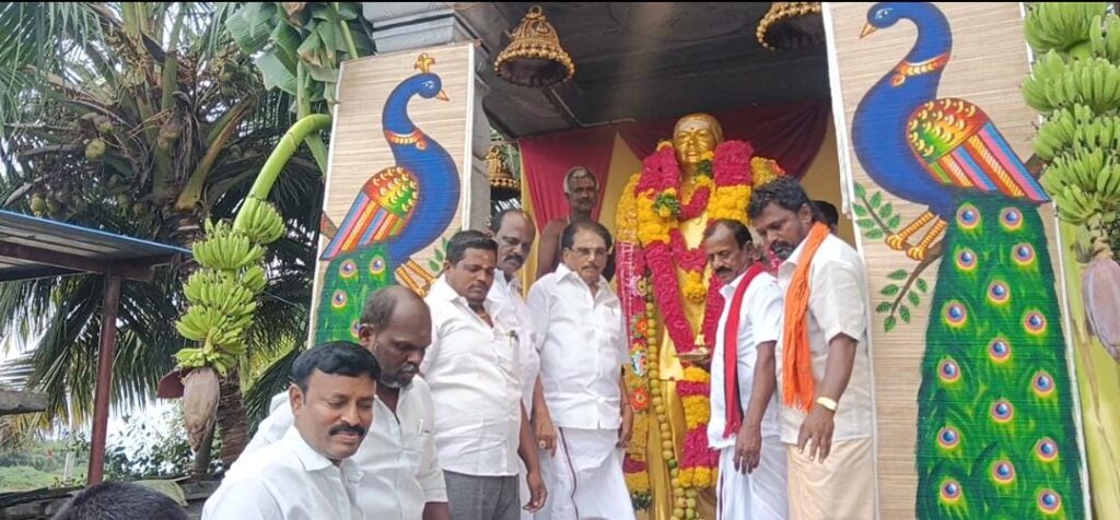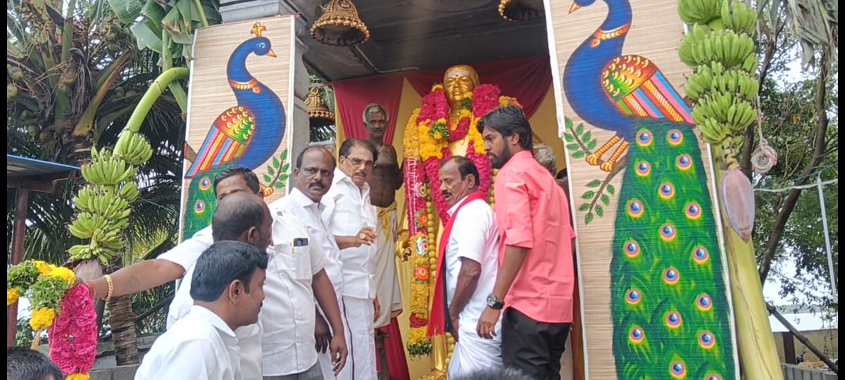 சாத்தூர் அருகே கே. மேட்டுப்பட்டி கிராமத்தில் முத்துராமலிங்க தேவரின் சிலை திறப்பு விழாவில் வருவாய்த்துறை மற்றும் பேரிடர் மேலாண்மை துறை அமைச்சர் கே கே எஸ் எஸ் ஆர் ராமச்சந்திரன் சிலையை திறந்து வைத்து சிறப்பு வழிபாடு செய்தார்.