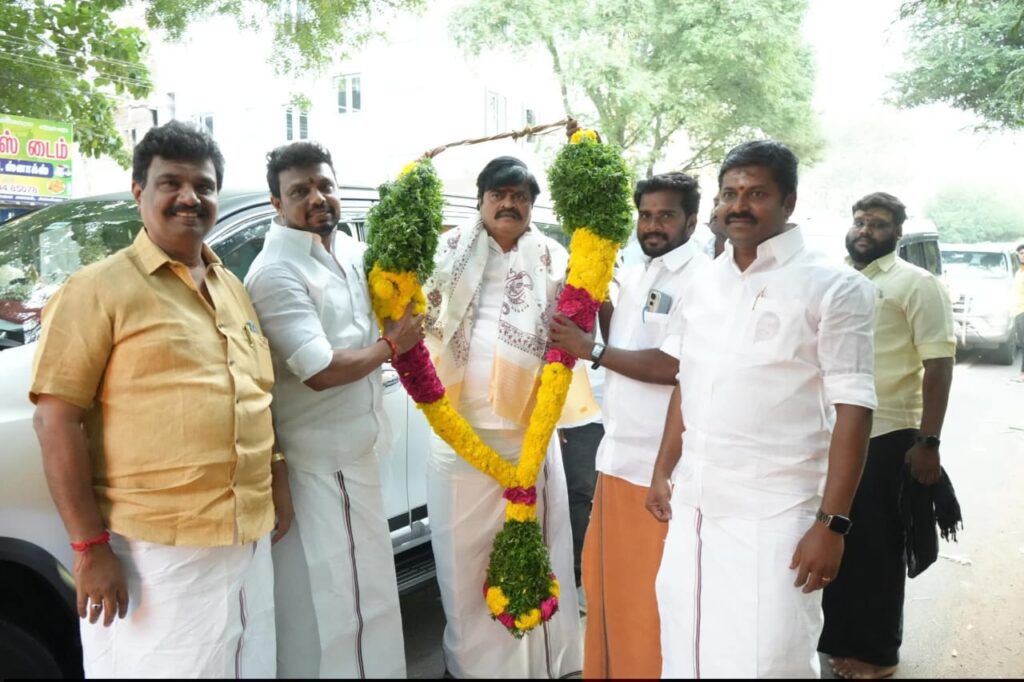 முன்னாள் அமைச்சர் பெருமக்களுடன் அதிமுக மேற்கு மாவட்ட கழக செயலாளர் முன்னாள் அமைச்சருமான கே. டி. ராஜேந்திர பாலாஜி அருகில் உள்ளார்.