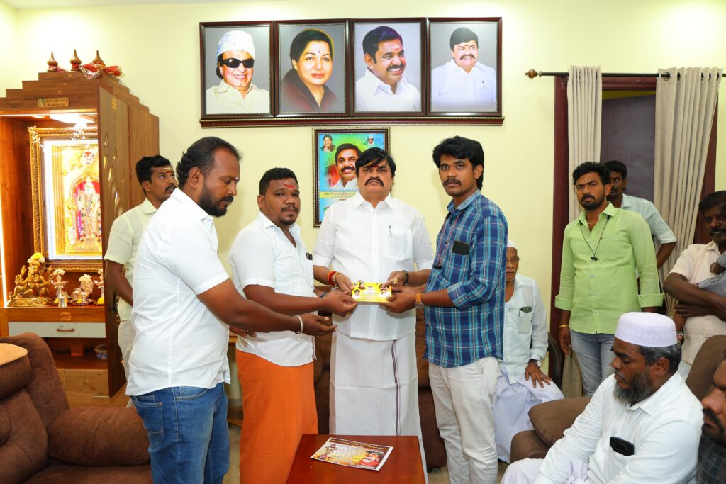 பிறந்த தினவிழாவில் கலந்து கொண்டு சிறப்பிக்க வேண்டும் என விழா கமிட்டினர் முன்னாள் அமைச்சரும் அதிமுக மேற்கு மாவட்ட கழக செயலாளருமான கே. டி. ராஜேந்திர பாலாஜியிடம் அழைப்பிதழ் கொடுத்தனர்.