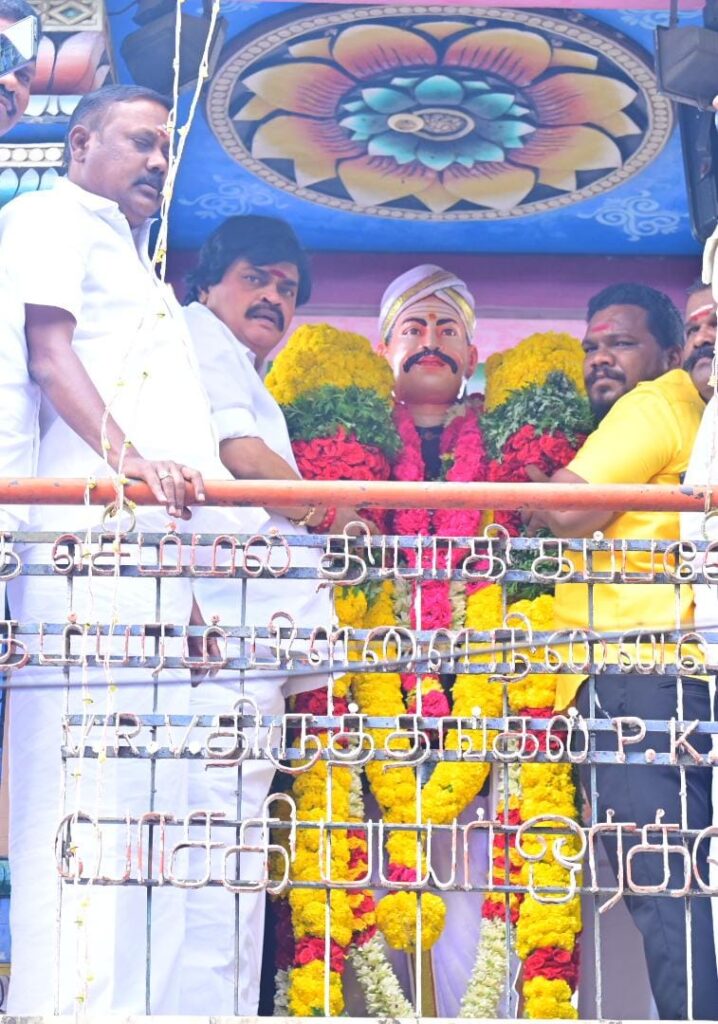 விருதுநகர் மாவட்ட சிவகாசி அருகே உள்ள திருத்தங்கல் மாரியம்மன் கோவில் அருகிலுள்ள ஐயா வஉசி அவர்களின் திருவுருவ சிலைக்கு அதிமுக மேற்கு மாவட்ட செயலாளரும்,முன்னாள் அமைச்சருமான ராஜேந்திர பாலாஜி மாலை அணிவித்து மரியாதை செலுத்தினார் .