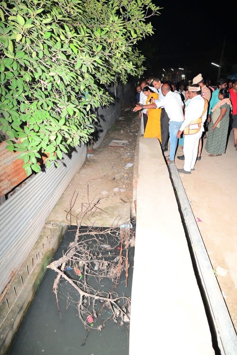மழை வெள்ள தடுப்பு நடவடிக்கைகளை மேற்கொள்ள வந்திருந்த கனிமொழி..,