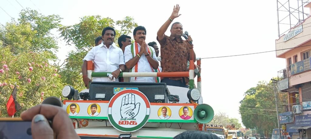காங்கிரஸ் வேட்பாளருக்கு ஆதரவாக கார்த்திக் சிதம்பரம் பரப்புரை..,
