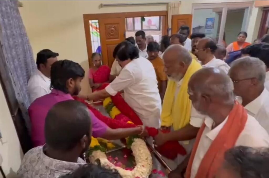 என்ற செய்தி அறிந்து சிவகாசி அருகே உள்ள இராமுத்தேவன் பட்டியில் அவர்களது இல்லத்திற்கு நேரில் சென்று அங்கு வைக்கப்பட்டுள்ள அன்னாரின் பூத உடலுக்கு மாலை அணிவித்து இறுதி மரியாதை செலுத்தி துணைவியாரை இழந்து வாடும்…