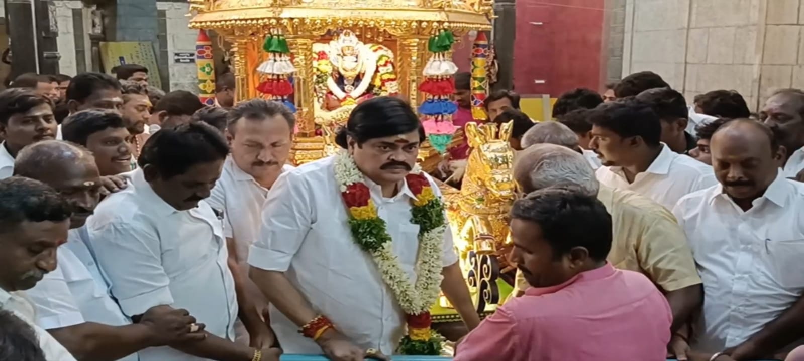 2026 இல் அதிமுக பெரும்பான்மையான தொகுதிகளில் வெற்றி பெற்று ஆட்சி அமைக்கவும் எடப்பாடியார் பிறந்த நாளை முன்னிட்டு அதிமுக மேற்கு மாவட்ட கழக செயலாளர் முன்னாள் அமைச்சர் மன கே. டி .ராஜேந்திர பாலாஜி சிவகாசி மாரியம்மன் கோவிலில் தங்கத் தேர் இழுத்து சிறப்பு பூஜை வழிபாடு நடத்தி பொது மக்களுக்கு அன்னதானத்தை தொடங்கி வைத்தார்.