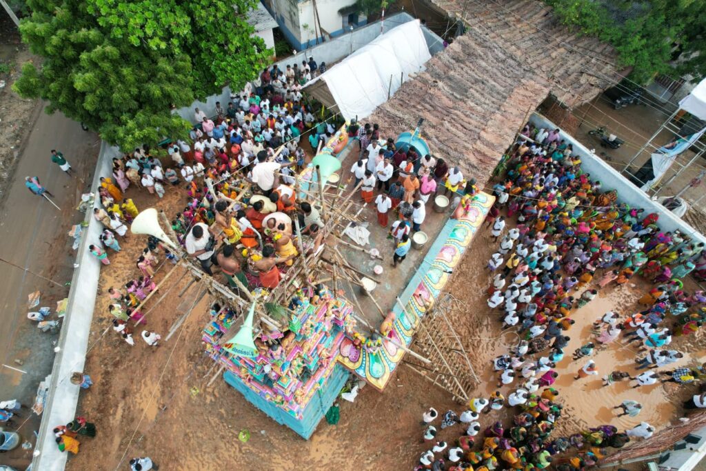 இவ்விழாவை முன்னிட்டு முன்னதாக கணபதி ஹோமம், வாஸ்து சாந்தி, முதல்கால யாகசாலை பூஜைகள், இரண்டாம், மூன்றாம் கால யாகசாலை பூஜைகள் உள்ளிட்ட பல்வேறு யாகசாலை பூஜைகளுடன் தொடங்கிய கும்பாபிஷேக விழாவானது தொடர்ந்து மங்கள இசை முழங்க கடம் புறப்பாடாகி சந்தன மாரியம்மன் கோவில் கோபுர கலசத்திற்கு சிவாச்சாரியார்கள் புனிநீர் தெளிக்கப்பட்டு கும்பாபிஷேகம் நடைபெற்றது.