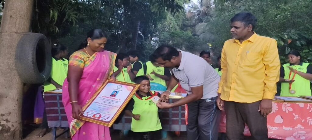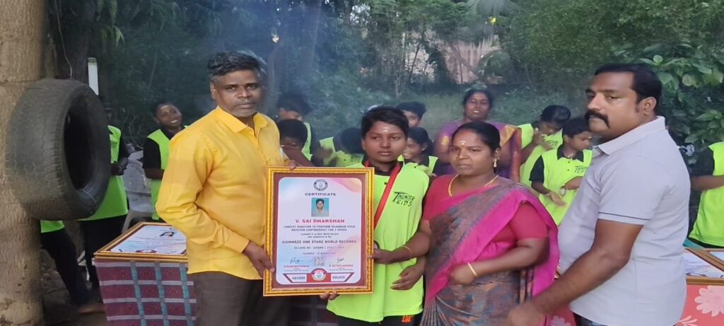 விழாவின் முக்கிய நிகழ்ச்சியாக உலக சாதனை நிகழ்ச்சியில் பங்கேற்று வெற்றி பெற்ற மாணவ மாணவிகளுக்கு அவர்களது பெற்றோர்கள் கையால் பரிசுகள் மற்றும் சான்றிதழ்கள் வழங்கும் நிகழ்ச்சி நடைபெற்றது. நிகழ்ச்சியில் பங்கேற்ற மாணவ மாணவிகள் உலக சாதனைகள் சிலம்பம் சுற்றிய நிகழ்ச்சியின் மாதிரி வடிவத்தை குத்தாலத்தில் செய்து காண்பித்தனர் இது பார்வையாளர்களை வெகுவாக கவர்ந்தது.