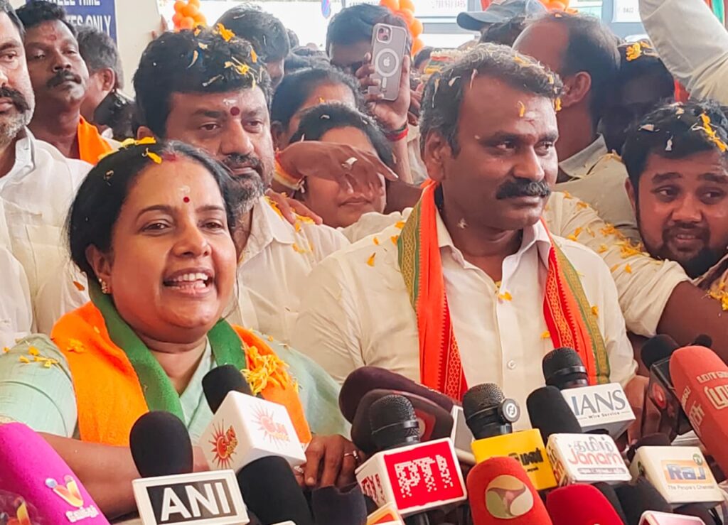 இந்த நிலையில் சென்னையில் இருந்து கோயம்புத்தூர் விமான நிலையம் வந்த பாஜக வேட்பாளர்களுக்கு பாஜகவினர் சார்பில் உற்சாக வரவேற்பளிக்கப்பட்டது.