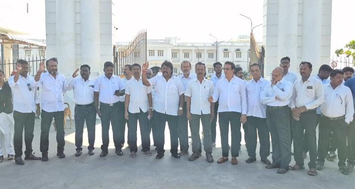 E-filing -க்கான போதிய இணையதள வசதிகள், போதிய உள் கட்டமைப்பு வசதிகள் மற்றும் தொழில் நுட்ப திறன் கொண்ட நீதிமன்ற ஊழியர்களை நியமிக்காமல், E-filing முறையை கட்டாயப்படுத்தியிருப்பதை கண்டிக்கும் வகையிலும், E-filing-க்குக்கான கட்டமைப்புக்களை ஏற்படுத்திக்கொடுக்கும் வரை Manual Filing முறையை அனுமதிக்க வலியுறுத்தி காரைக்கால் வழக்கறிஞர்கள் சங்கம் சார்பில் நீதிமன்ற பணி புறக்கணிப்பு போராட்டம் நடைபெற்றது. இதில் வழக்கறிஞர் சங்க தலைவர் திருமுருகன் உள்ளிட்ட 100-க்கும் மேற்பட்ட வழக்கறிஞர்கள் கலந்து கொண்டு கண்டனம் முழக்கங்களை எழுப்பி ஆர்ப்பாட்டத்தில் ஈடுபட்டனர்.
