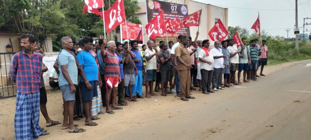 HL என்ற பெயரில் சுமைப்பணி தொழிலாளர்களின் கூலியில் மாதாமாதம் பணம் கட்ட சொல்வதை தடுத்து நிறுத்திடுக, குடோன்களில் அடிப்படை வசதி செய்து கொடு உள்ளிட்ட கோரிக்கைகளை வலியுறுத்தி கண்டன ஆர்ப்பாட்டம் நடைபெற்றது.