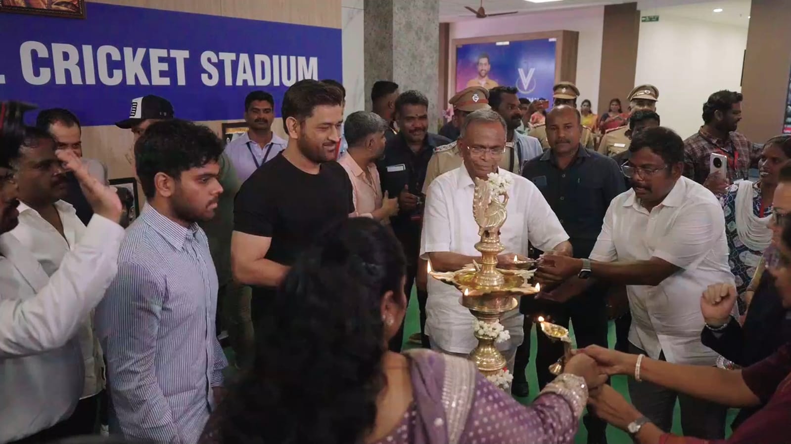 கிரிக்கெட் மைதானத்தை தொடங்கி வைத்த எம். எஸ். தோனி..,