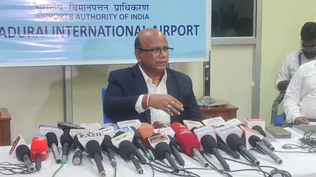 மத்திய அமைச்சரவைக் குழுவின் ஒப்புதலின்படி, இந்திய விமான நிலையங்கள் ஆணையத்தின் (AAI) தலைமையக உத்தரவின் அடிப்படையில் மதுரை விமான நிலையம் அதிகாரப்பூர்வமாக ‘பன்னாட்டு விமான நிலையமாக’ இன்று அறிவிக்கப்பட்டுள்ளது. இதற்கான செய்தியாளர் சந்திப்பு மதுரை விமான நிலைய வளாகத்தில் நடைபெற்றது. இதில் மதுரை விமான நிலைய இயக்குனர் முத்துகுமார் செய்தியாளர்களை சந்தித்துக் கூறியதாவது: