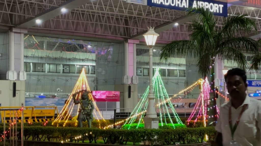 மதுரை விமான நிலையத்தில் குடியரசு தினம் சுதந்திர தினத்தன்று விமான நிலையம் முழுவதும் வண்ண விளக்குகளால் அலங்கரிக்கப்படும்.