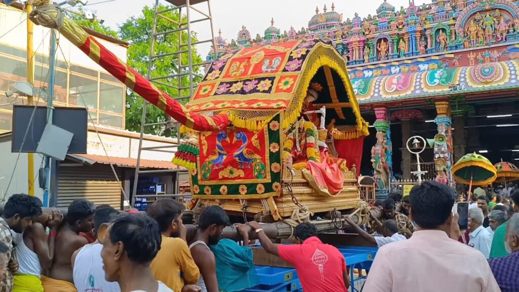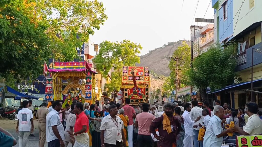 இவர்களுக்கு வழி நெடுகிலும் திருக்கண் நடைபெற்று இன்று இரவு மதுரை மீனாட்சி அம்மன் கோவிலில் சென்றடைவார்கள். அதன் பின்பு மே 2ந் தேதி மதுரையிலிருந்து திருப்பரங்குன்றம் அருள்மிகு சுப்ரமணிய சுவாமி தெய்வானை அம்மன் பூப்பல்லாக்கில் எழுந்துருளியும் பவளக்கனியாய் பெருமாளும் திருப்பரங்குன்றம் முருகன் கோயிலுக்கு வருகை தருவார்கள்.