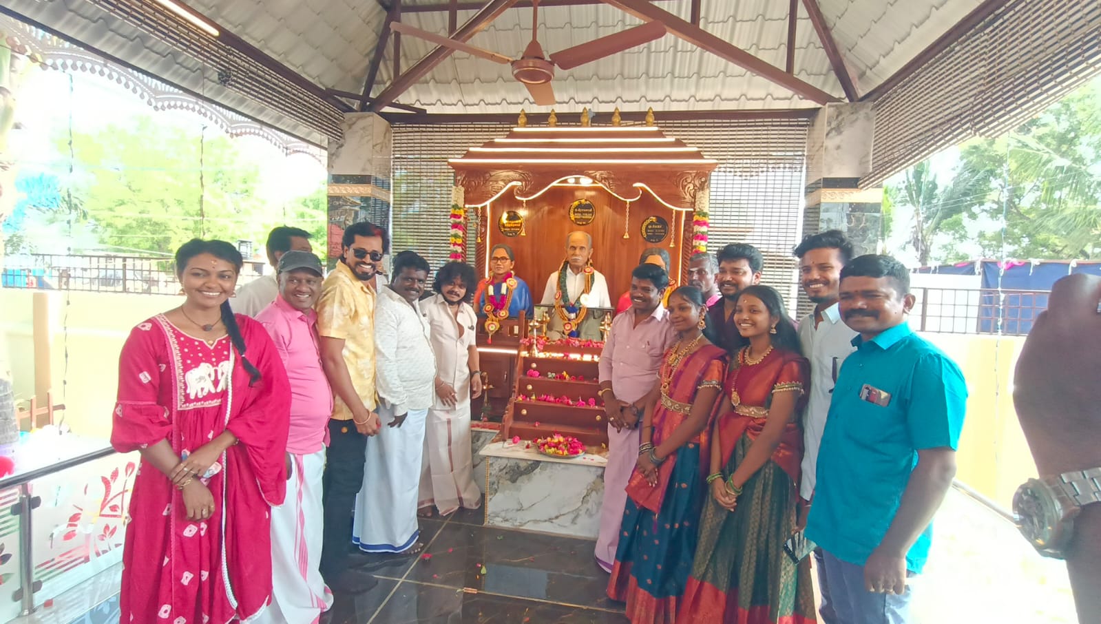 மக்களை சிரிக்க வைப்பது மட்டுமில்லாமல் ஏழை எளியோருக்கு உதவி செய்வது போன்ற பொது சேவைகளில் ஈடுபட்டு வரும் பிரபல நகைச்சுவை நடிகர் மதுரை முத்துவின் மனைவி சில ஆண்டுகளுக்கு முன் விபத்தில் உயிரிழந்தார். மேலும் உடல் நலக் குறைவு காரணமாக மறைந்த பெற்றோர் மற்றும் மனைவிக்காக உனது சொந்த ஊரான மதுரை திருமங்கலம் அருகே உள்ள அரசப்பட்டி கிராமத்தில் கோவில் கட்டி உள்ளார் மதுரை முத்து.