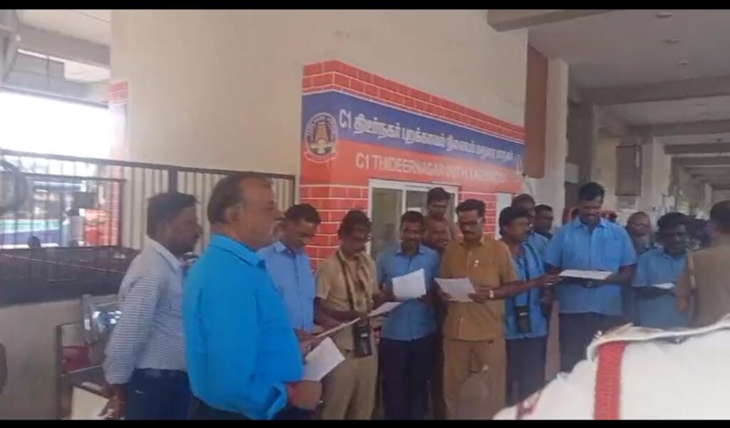 மதுரை மாநகர போக்குவரத்து காவல்துறை சார்பில், அரசு பேருந்து ஒட்டுநர்கள் மற்றும் நடத்துநர்கள் பணியின் போது செல்போன் பயன்படுத்தக் கூடாது என்பதையும், பாதுகாப்பான பேருந்து இயக்கம் தொடர்பான விதிமுறைகளை கடைப்பிடிக்க வேண்டும் என்பதையும் வலியுறுத்தி விழிப்புணர்வு நிகழ்ச்சி நடத்தப்பட்டது.