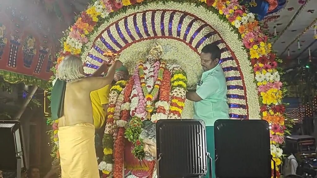 மாலையில் பக்தர்கள் சரண கோஷம் முழங்க மகா ஸ்ரீ சற்குரு கணக்கம்பட்டி சுவாமிகளுக்கு சிறப்பு அலங்காரத்தில் பூப்பல்லக்கில் எழுந்தருளினார்.