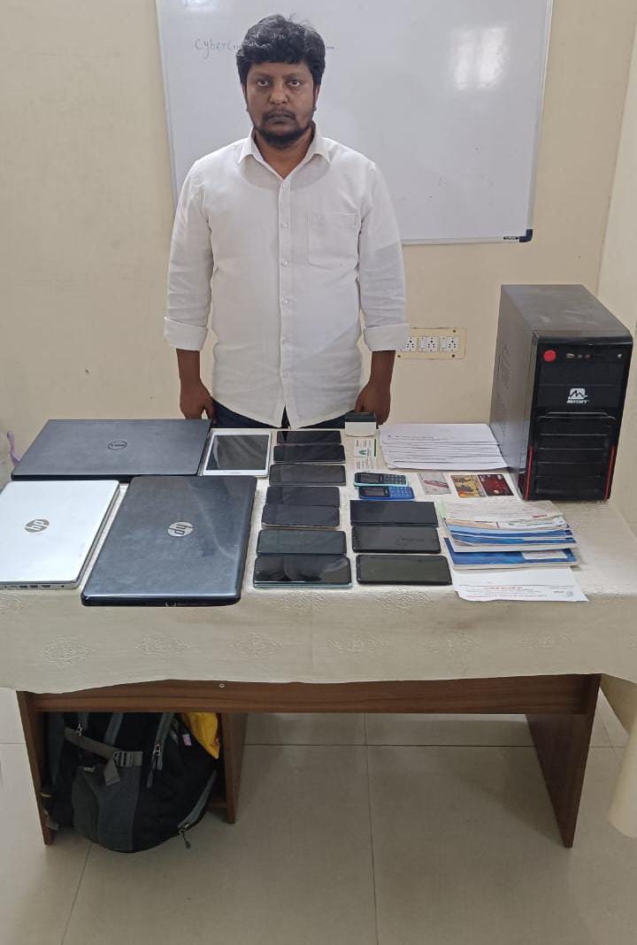 அவரது வங்கி கணக்கும் முடக்கப்பட்டு அதில் இருந்து மோசடிக்கு பயன்படுத்த லேப்டாப்கள், செல்போன்கள் மற்றும் வங்கி பாஸ்புக் ஆகியவை பறிமுதல் செய்யப்பட்டு உள்ளது.