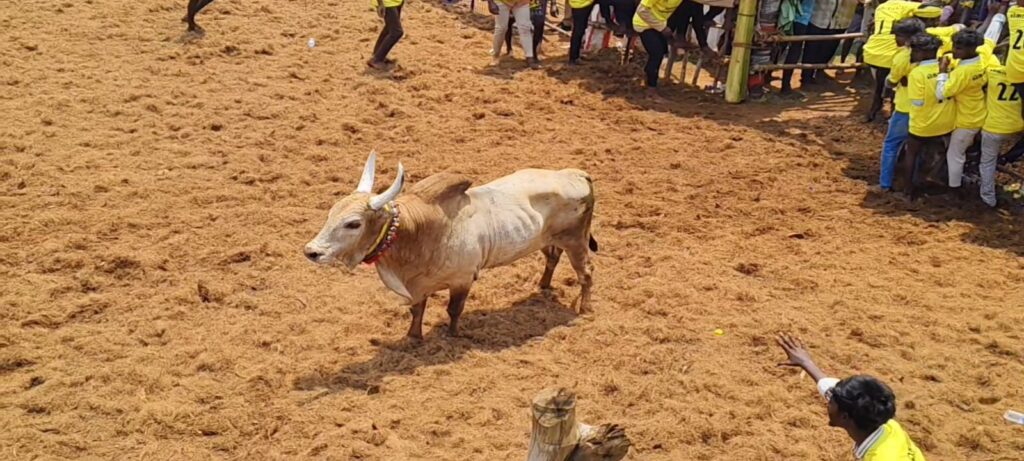 சிவகங்கை மாவட்டம் குன்றக்குடி அருகே கொரட்டி சிந்தாமணி அம்மன் கோவில் பொங்கல் திருவிழாவை முன்னிட்டு மஞ்சுவிரட்டு போட்டி நடத்தப்பட்டது.