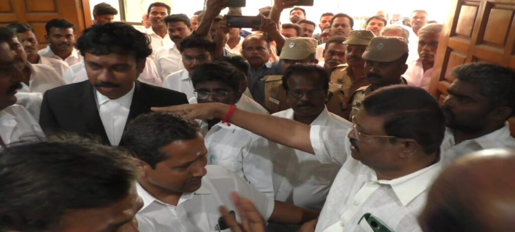 அப்போது காவல் கண்காணிப்பாளர் அலுவலகத்திற்குள் உள்ளே செல்ல அனுமதி மறுக்கப்பட்டதாக தெரிவித்து வழக்கறிஞர் சங்கத்தின் மாநில தலைவர் போலீசாருடன் வாக்குவாதத்தில் ஈடுபட்டார்.