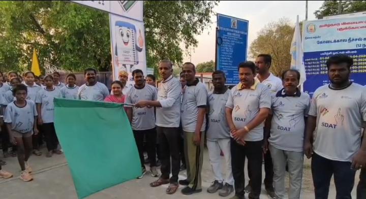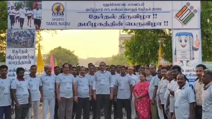 அந்த வகையில் புதுக்கோட்டை மாவட்ட விளையாட்டு அரங்கில் அரசு அதிகாரிகளைக் கொண்டு பல்வேறு விழிப்புணர்வு நிகழ்ச்சிகளை தொடர்ந்து நடத்தி வருகிறார்கள். இன்று காலை புதுக்கோட்டை மாவட்ட விளையாட்டு அரங்கில் நடைபெற்ற மாரத்தான் ஓட்டப் போட்டியை மாவட்ட வருவாய் அலுவலர் ஹெச். எம். குழந்தைசாமி பச்சைக்கொடி அசைத்து தொடங்கி வைத்தார். இந்நிகழ்வில் பல்வேறு துறை அதிகாரிகளும் குறிப்பாக விளையாட்டுத்துறையில் உள்ள அனைத்து நிலையிலும் பணியாற்றும் அலுவலர்களும் கலந்து கொண்டனர். மேலும் பள்ளி மற்றும் கல்லூரி மாணவர்கள் இளைஞர்கள் இளம்பெண்கள் உள்ளிட்டோர் நூற்றுக்கணக்கானோர் கலந்து கொண்டனர்.