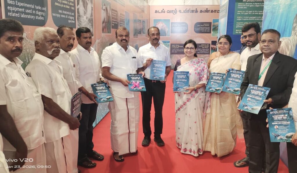 கோவை நவக்கரை பகுதியில் உள்ள ஏஜேகே கல்லூரியில் கடல்வாழ் உயிரினங்களை மையமாகக் கொண்ட புகைப்படக் கண்காட்சி துவங்கியது. “ஆழியில் ஒரு தடம்” என்ற தலைப்பில், கடலுயிர் ஆய்வாளர் மறைந்த விஞ்ஞானி டாக்டர் ஆர். எஸ். லால் மோகன் நினைவாக இந்த கண்காட்சி நடைபெற்று வருகிறது.